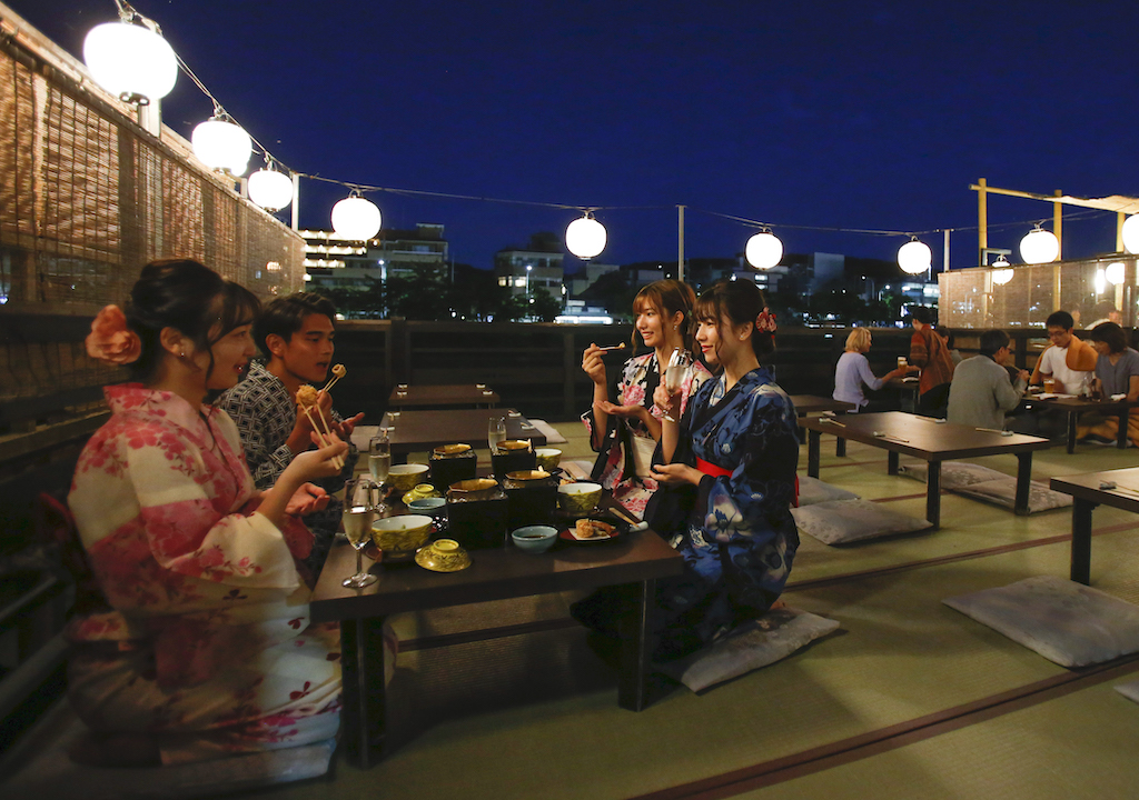 京都の夏の風物詩、鴨川・納涼床。詳しくは木屋町店までお問い合わせ下さい。6,7、8月は夜のみ川床をお楽しみいただけます。9月は昼、夜ともにお楽しみいただけます。木屋町店 tel:075-251-1600